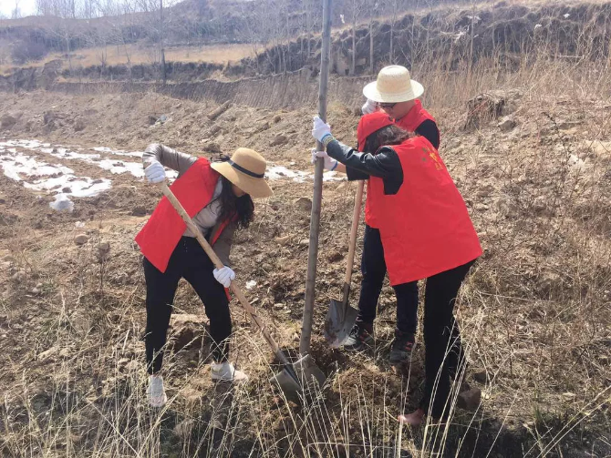 青年志愿者在植树互助县蔡家堡乡党政办