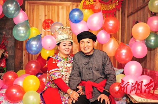 2017年1月22日,龙先兰(右)和吴满金喜结连理。(图片来源:湖南日报“新湖南”)