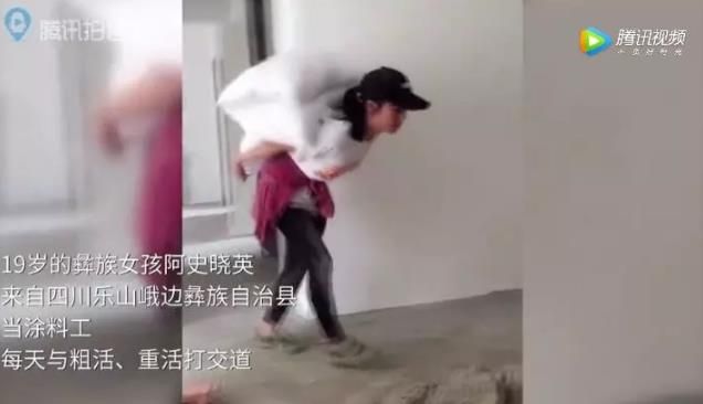 19岁的彝族女孩阿史晓英却像往常一样,穿起工装,戴着帽子和一双手套,拿着铲子在建筑工地忙碌。