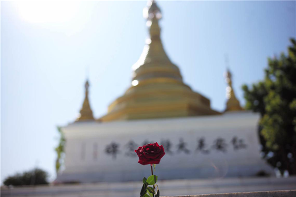 如今,血染的战场,已难觅当年的枪炮痕迹。烈日下,只有海峡两岸出资新修建的仁安羌大捷纪念碑,呈七级佛塔造型,金光闪闪,高高地耸立在“501高地”上。