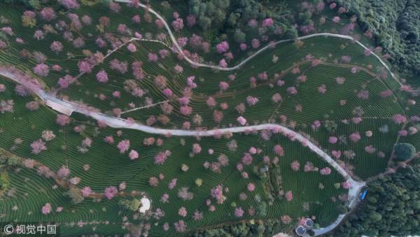 每年12月初,当南国的秋渐深,北国的冬渐浓之时,大理南涧县的无量山却是一片春意盎然,一株株粉色的冬樱花在千亩茶园中竞相绽放,绚丽多姿。漫步其间,只觉茶树碧波荡漾,粉樱花团锦簇,丝毫感觉不到一丝丝冬季萧瑟的气息。简朴的农屋,墨绿的茶园,闲适的美好慢时光,让游人憧憬不已。若是你在清晨时来到无量山,你还能亲经日出后的云蒸霞蔚和雾里看花的朦胧之美。