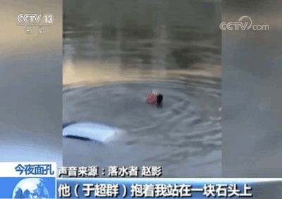 此时,水已淹到了车顶的位置,好在尚留有一处可以扶手的地方,于超群将赵影暂时安置在那,又往副驾驶的位置游,这个过程中,岸边的热心人一直在跟赵影喊话,问还有没有人被困。