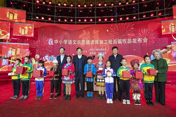 12月23日,由中央广播电视总台、教育部、国家语委联合举办的“中小学语文示范诵读库”第二季作品发布会在北京举行。中宣部副部长、中央广播电视总台台长慎海雄,教育部副部长、国家语委主任杜占元,中央广播电视总台副台长阎晓明出席发布会,共同见证第二批100篇音频教材正式上线发布。