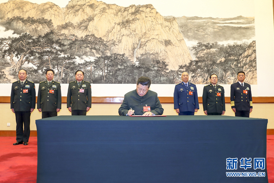 1月4日,中央军委军事工作会议在北京召开。中共中央总书记、国家主席、中央军委主席习近平出席会议并发表重要讲话。这是习近平签署中央军委2019年1号命令,向全军发布开训动员令。 新华社记者 李刚 摄