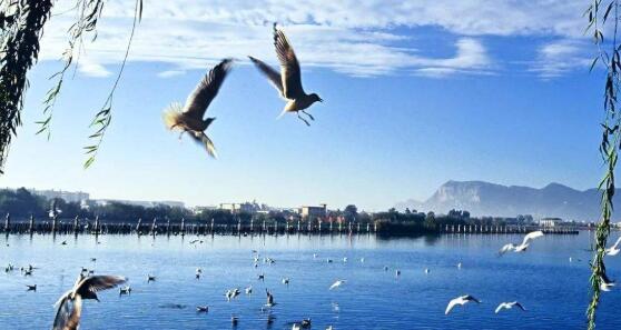 一位拿着300多元退休金的老人,省吃俭用,一顿就是两个馒头一点咸菜,每天从城郊的家步行到翠湖公园,用节俭下来的钱买鸥粮喂鸥,日复一日,年复一年,红嘴鸥与这个脊背佝偻的老人相互偎依,成了家人。多年以后,他的故事被搬上银屏——《老人与海鸥》,无数昆明人看完这个故事后潸然泪下,那个佝偻的形象,一下子长成了很高很高。