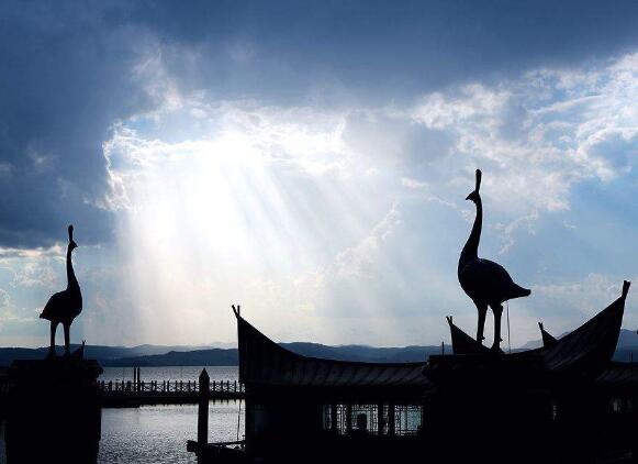 其实,如果站在昆明境内来看,昆明就是半部“西游”,500里滇池是左脚,大半个抚仙湖是右脚,昆明脚踩两湖,手拿乾坤圈,活脱脱一个红孩儿,奔跑在七彩祥云之上,斩妖除魔。