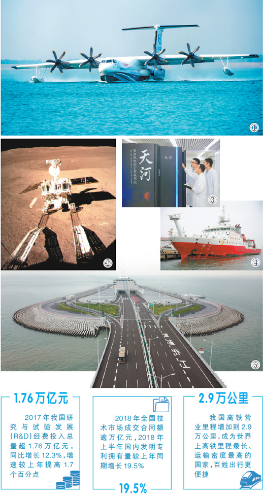 促进民生持续改善。在农业科技的支撑下,2018年我国粮食生产保持稳定,结构更优、品质更好;新药研发开花结果,多款抗癌新药获批上市,为百姓健康提供了更好保障;凭借多年的自主创新,高速列车更新换代、新型铁轨绵延铺展,我国高铁营业里程增加到2.9万公里,成为世界上高铁里程最长、运输密度最高的国家,百姓出行更便捷。