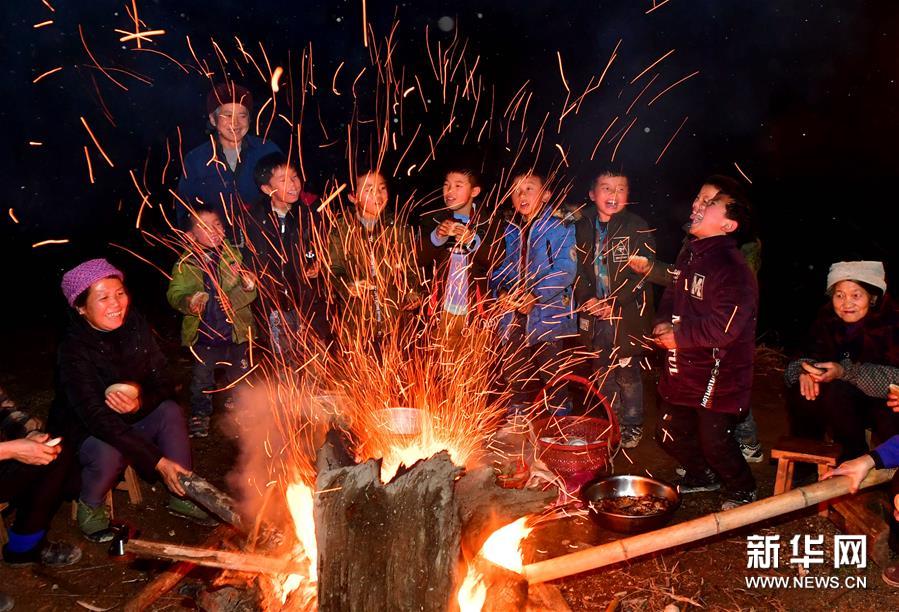 1月5日,在广西融水苗族自治县杆洞乡尧告村,村民们在户外聚会。 新华社记者黄孝邦/摄