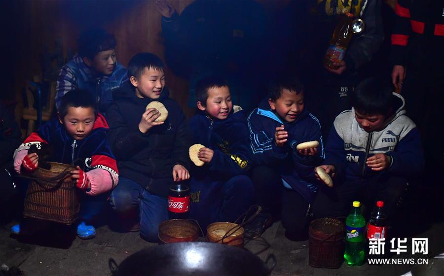 1月5日,在广西融水苗族自治县杆洞乡尧告村,小朋友们到长辈家中拜年。 新华社记者黄孝邦 /摄