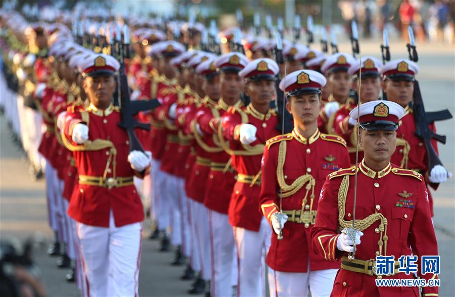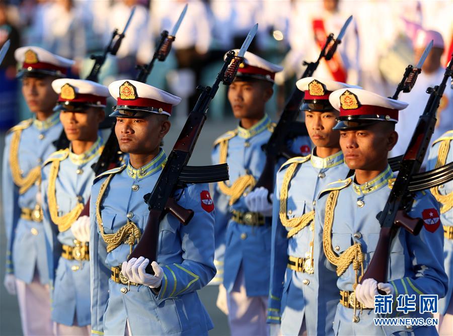 1月4日,在缅甸内比都,缅甸军人参加庆祝缅甸独立71周年的活动。 缅甸4日举行活动,庆祝独立71周年。 新华社发(吴昂摄)