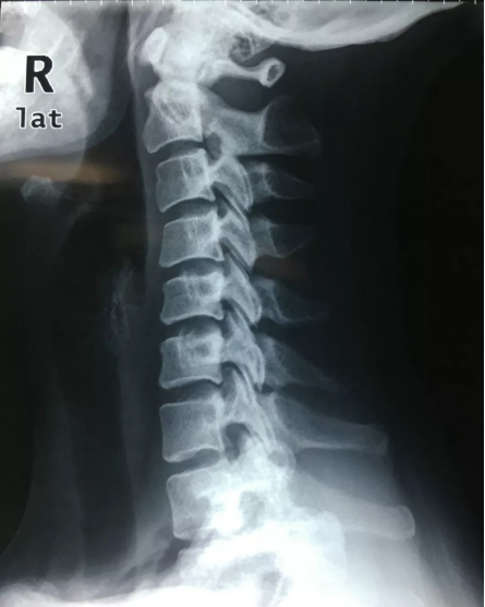 图:颈椎X光片侧面照,可以见到颈椎生理曲度反弓 图/张华