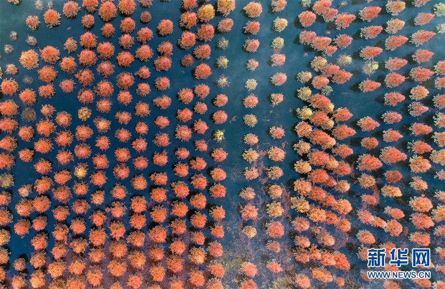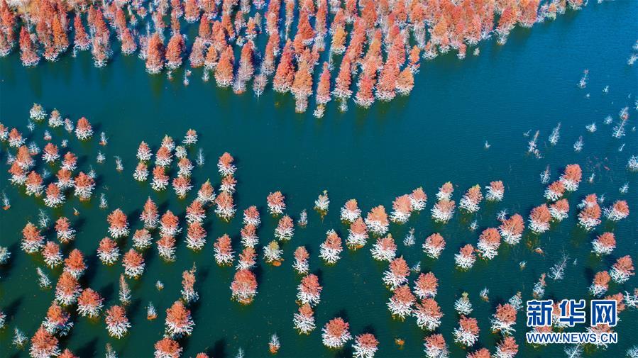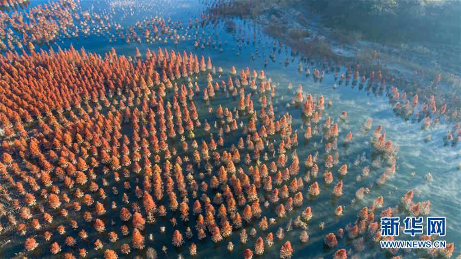 甸尾村水杉湿地一景(1月5日无人机拍摄)。新华社记者 秦晴/摄
