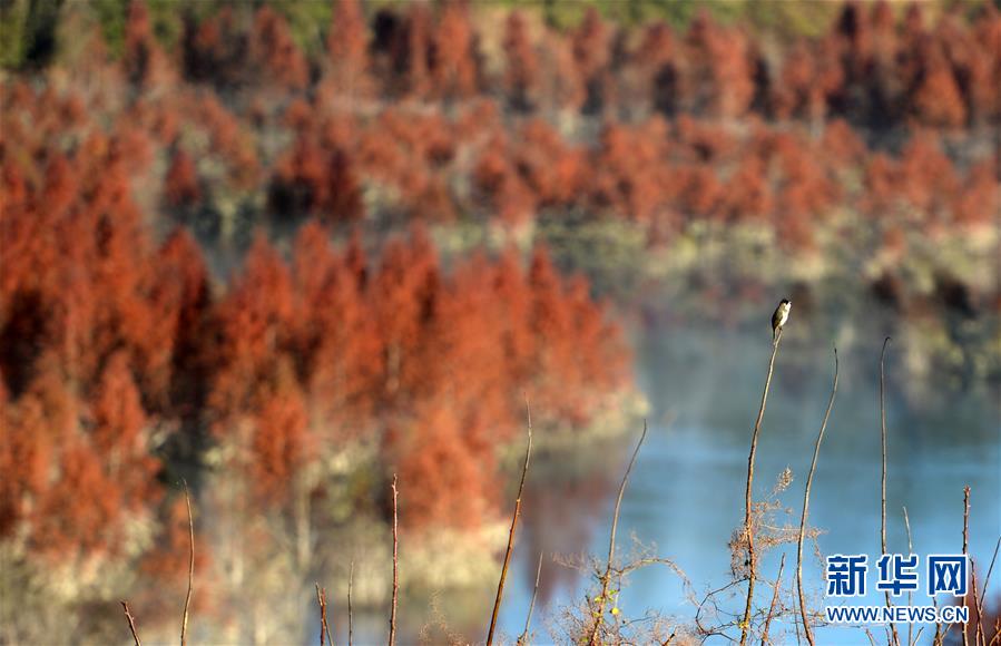 一只鸟在甸尾村水杉湿地停留(1月5日摄)。新华社记者 秦晴/摄