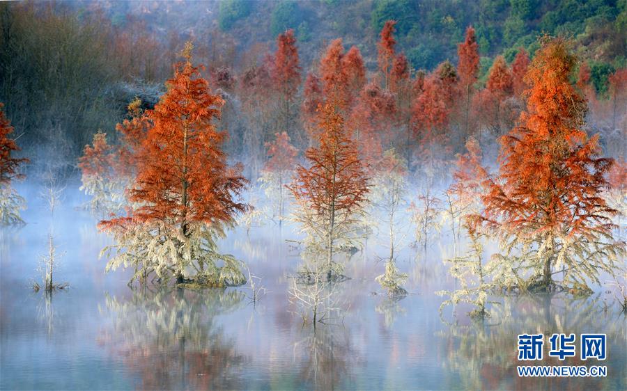 冬日清晨,昆明市盘龙区滇源街道甸尾村水杉湿地笼罩在一片飘渺水雾中,宛如仙境。这片湿地位于滇池上游、昆明松华坝水源保护区内。