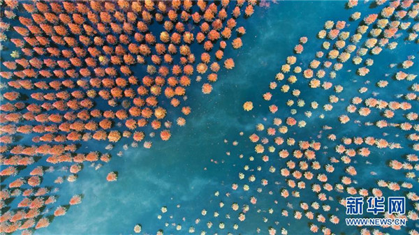 甸尾村水杉湿地一景(1月5日无人机拍摄)。 新华社 记者秦晴/摄
