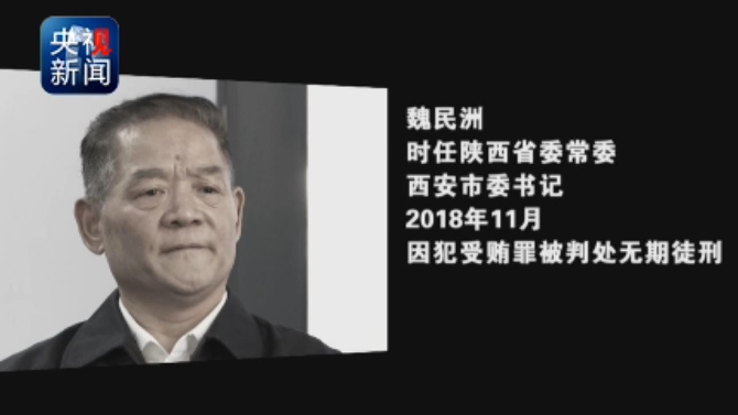 魏民洲,时任陕西省委常委、西安市委书记,2018年11月因犯受贿罪被判处无期徒刑。