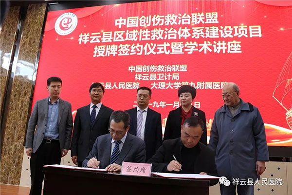 1月18日,祥云县人民医院与中国创伤救治联盟举行了“中国创伤救治联盟祥云县区域性救治体系建设项目”授牌签约仪式,标志着祥云县人民医院正式加入国家级创伤救治大平台,这也是滇西地区首家区域性创伤救治中心授牌。