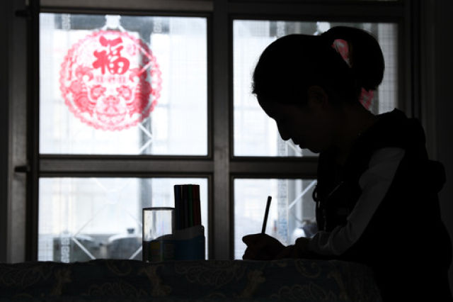 薛峰提前写下今年春运给儿子的请假条(1月18日摄)。新华社 记者李博/摄