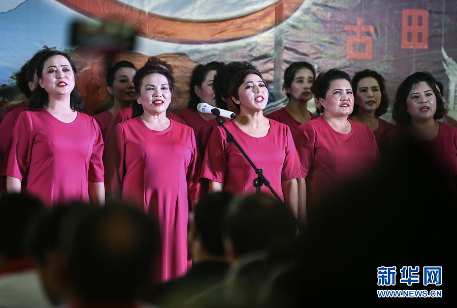 主要由二十里店村妇女组成的文艺队正在演出。新华社 记者王菲/摄