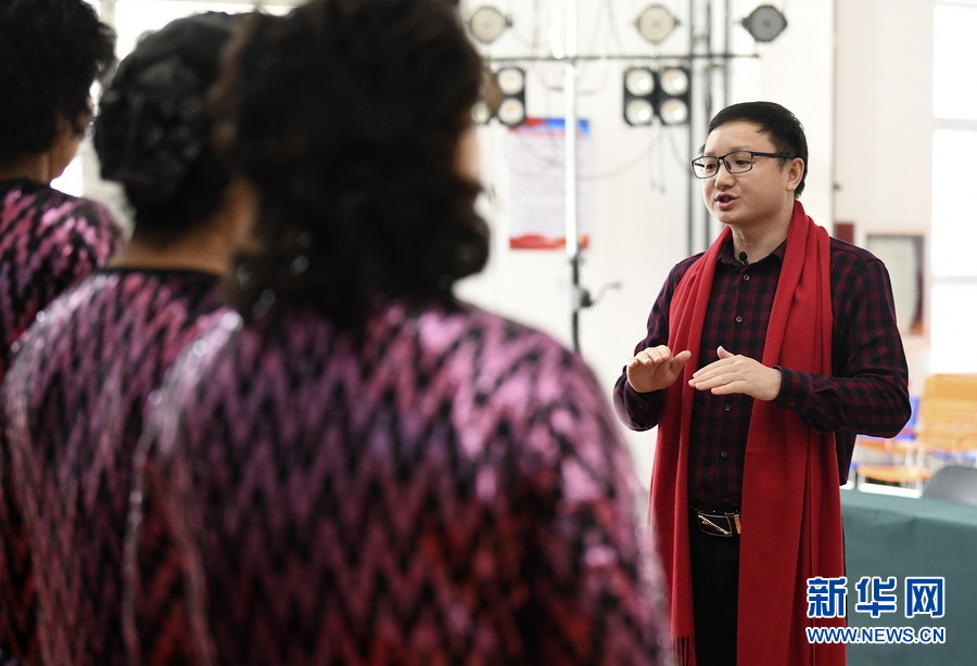 文艺队队员正在进行排练。新华社 记者王菲/摄