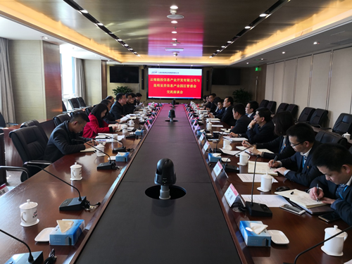 云南能投信息产业开发有限公司副总经理黄晓明、黄传兵、汪洁等,园区管委会规建部、经发部、招商部、财务部及智投公司相关负责人参加交流座谈。