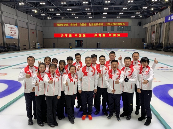 △中国国家冰壶队。(央视记者段德文拍摄)