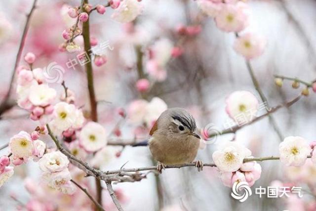 3日,重庆市武陵文化广场梅花盛开,让人们感受到了春的气息。(摄影 杨敏)