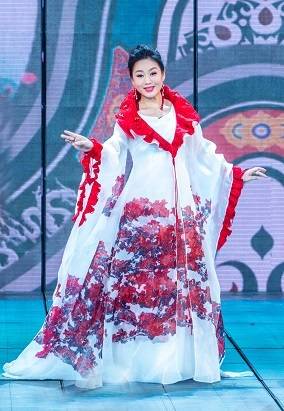 不同于京剧、豫剧、越剧、黄梅戏等其他四个剧种演员身着的传统戏服,曾小敏的服装显然经过精心设计的:水墨手绘一袭木棉花开,凸显在白色的纱裙上显得大气而舒展,袖间稍作点缀。放眼看去,红色灿烂且纯粹,一种大气磅礴的美扑面而来。