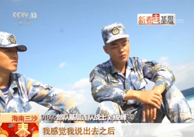 西沙某水警区轮式装甲突击车连战士 刘俊峰:每次我跟爸妈打电话,我妈一接到电话问我最近怎么样啊,我每次回的都是最近都挺好的,在部队不愁吃不愁穿,就是报喜不报忧吧。因为毕竟离家那么远,别给他们再增加多的担心和担忧。