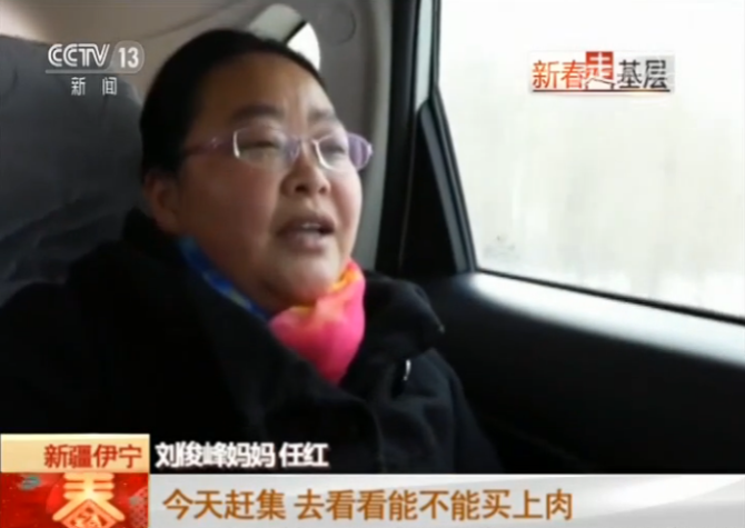 刘俊峰妈妈 任红:今天赶集去看看能不能买上肉,给儿子做一个他最爱吃我做的红烧肉,今天这种地方特别远。