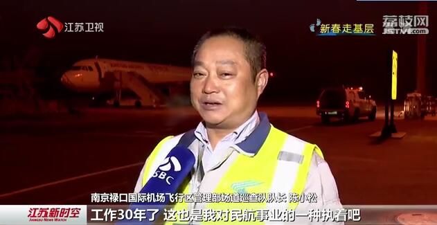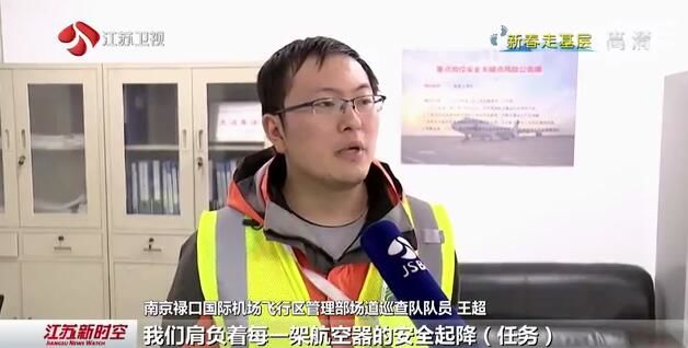 江苏台记者 毕然:“熟悉的机场,匆忙的身影,航站楼里,停机坪上,总有这样一群人始终在为我们的平安出行保驾护航,他们有的在台前兢兢业业,有的在幕后默默无闻。正是这样一种一丝不苟、严肃认真的工作作风,为航班的安全正点运行提了有力保障,也为我们所有的旅客春节回家照亮了前方的路。”