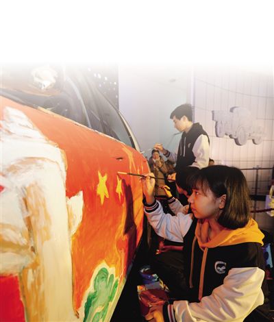 学生在北京汽车博物馆。
