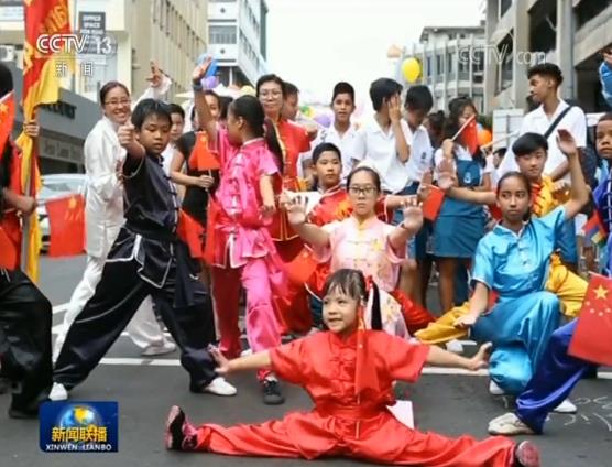 在非洲国家毛里求斯,花车巡游和广场庆典仪式让毛里求斯首都路易港热闹非凡。当天,“中国红”成了街道上最抢眼的颜色。