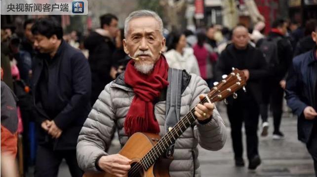 宽窄巷子最成都。冬日暖阳中,一位75岁的老者背着吉他,开始在巷子里浅吟轻唱。