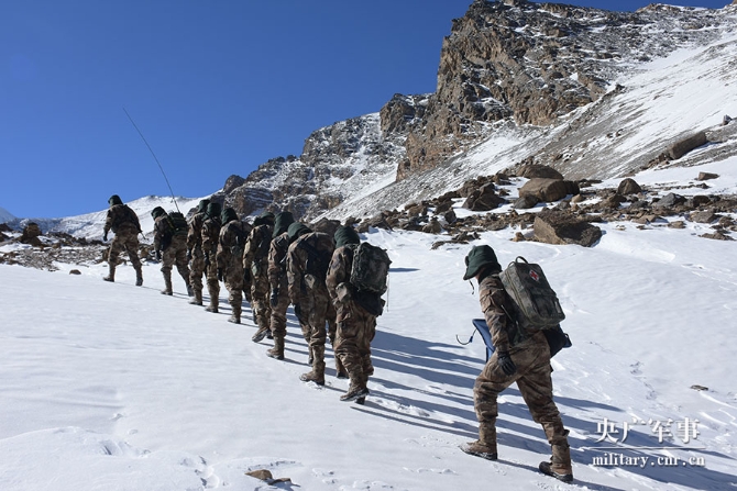 央广网2月8日消息(晏良 平措仁青)人工巡逻的制高点在哪,笔者没有考证,但春节征服海拔6280米冰川,却有幸见证。大年初一,西藏军区岗巴“高原戍边模范营”挑选耐力王、爬坡王等骨干破晓出征,笔者随队巡逻贺岁,登高迎春。