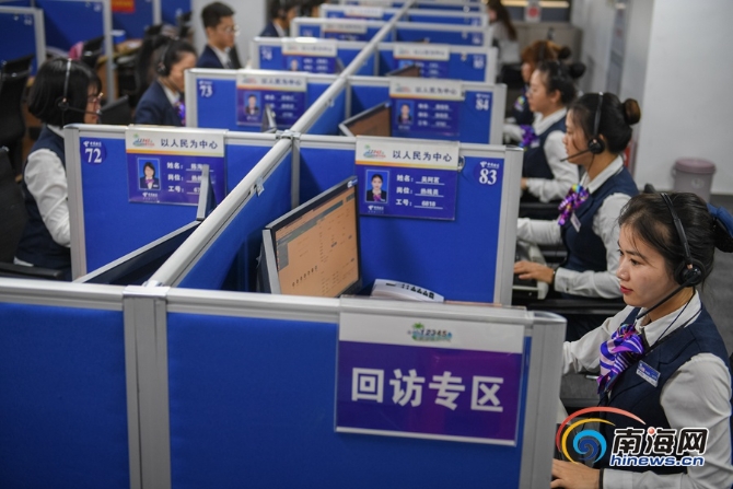 2019年2月8日,海口市民游客中心,12345政府服务热线的工作人员通过电话语音、网上工单、微信等受理市民诉求。海报全媒体中心记者 袁琛 摄