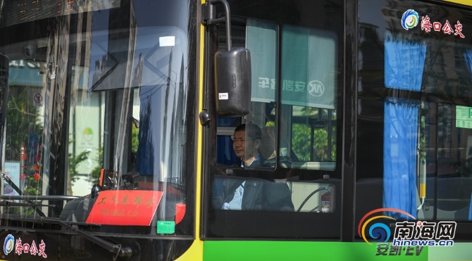 2019年2月8日,海口市第19路公交车,司机师傅安全驾驶中。海报全媒体中心记者 袁琛 摄