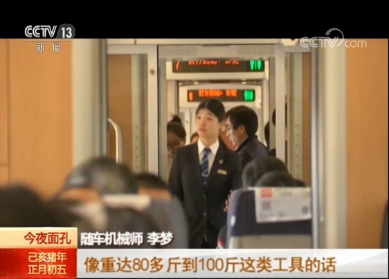 今天我们要认识一位95后女孩,李梦。在工作中同事称她为女汉子,这是因为她工作的岗位,她是广州动车段唯一的一名女随车机械师。今年,李梦是第一次以随车机械师的身份参加春运,因为一列动车只配备一名机械师,她需要对动车可能出现的故障进行判断、处理和反馈。工作强度非常大,操作的工具有些可能有几十上百斤重,非常沉。头一回跑春运,又是单兵作业,面对各种情况,这对李梦一个女孩来说吃得消吗?