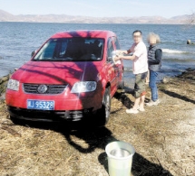 从网友提供的图片上看,这辆红色轿车开入洱海水中,车旁有两男两女4个人,其中两个男子和一个女性老者正在洗车,旁边还晒着一些刚刚洗好的衣服。