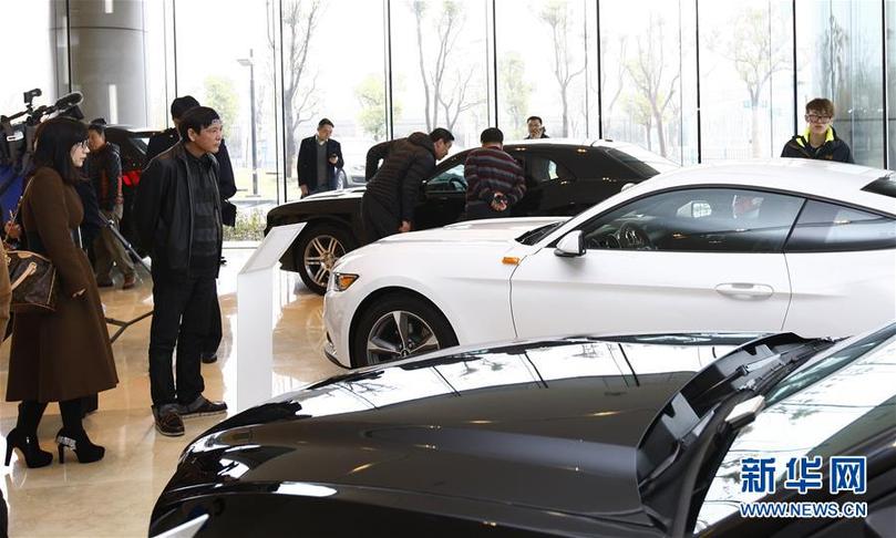 市民在上海自贸区平行进口汽车展示交易中心参观(2015年2月15日摄)。新华社 记者方喆/摄
