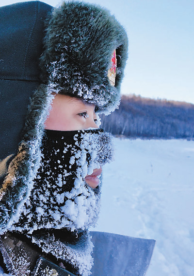 出发不到半小时,呼出的热气便在防寒面罩上结成一层厚厚的白霜,眉毛胡子也挂起了冰溜子,不一会儿工夫,巡逻官兵个个变成了“雪人”,中士吴宁乐观地说:“在祖国边防线上收到这样的‘新年礼物’,我喜欢,我自豪!”