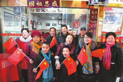 春节期间,映秀镇“带劲”豆花饭店的老板杨云刚(后排左二)邀请了泸州恩人王定洪(后排右二)全家来店里过新年。