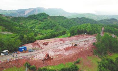 2018年6月,正在进行平场的三河村易地扶贫搬迁安置点。