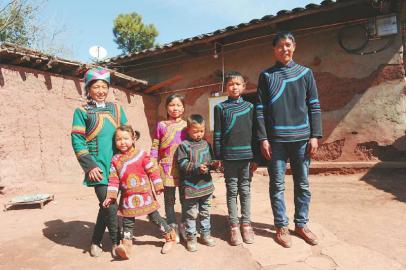 2018年2月1日,贫困户吉好也求一家在自家老房子前。