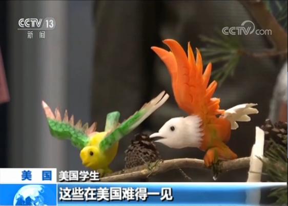 美国学生:(食物雕花)非常复杂,雕刻起来很难。他们(雕刻者)花了不少时间,如果换我来做,几个小时也雕不好。这些在美国难得一见,就像把中国的一天带到了这里。我非常高兴可以体验这么多中国文化。