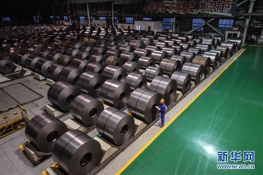 2017年11月4日,本钢集团工人在清点板材产品。新华社 记者潘昱龙/摄