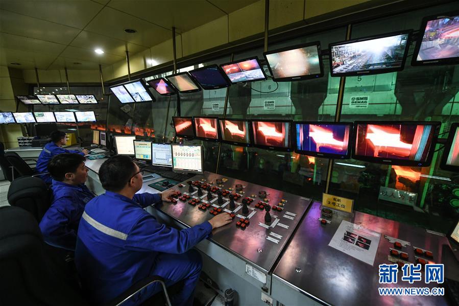 2017年11月4日,工人在本钢集团轧钢车间控制室查看生产情况。新华社 记者潘昱龙/摄