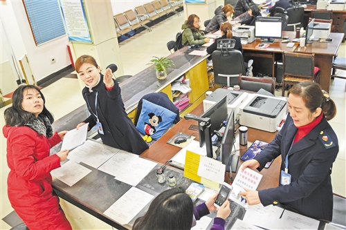 2月12日,江西省南昌市西湖区政务服务大厅,工作人员在为居民办理业务。自今年1月1日起,南昌市实行错时延时服务工作制,针对社保、医保、就业、出入境等直接与群众日常生产生活密切相关的事项,在双休日及节假日均安排值班人员提供服务。经济日报-中国经济网 记者赖永峰/摄