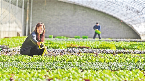 2月11日,河北省沙河市益民家庭农场菜农在给蔬菜浇水。刚过春节假期,当地农民就开始进入春忙时节。经济日报-中国经济网 记者宋美倩/摄
