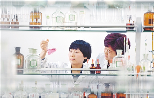 2月11日,湖北省宜昌市兴发集团白沙河工业园,技术员在进行产品化验。近年来,兴发集团围绕精细化工产品转型升级,不断加大科技创新力度,共获得专利382项,主导参与制定国家和行业标准48项。经济日报-中国经济网 记者柳洁/摄